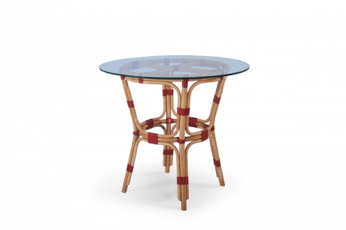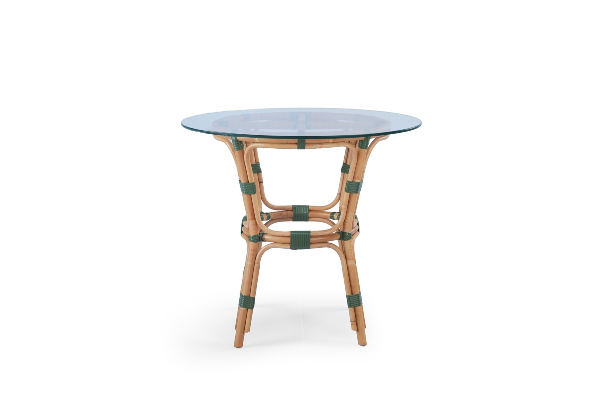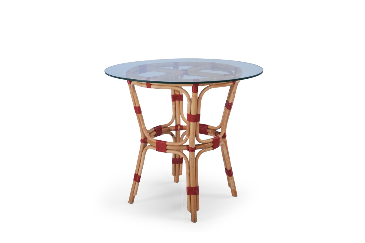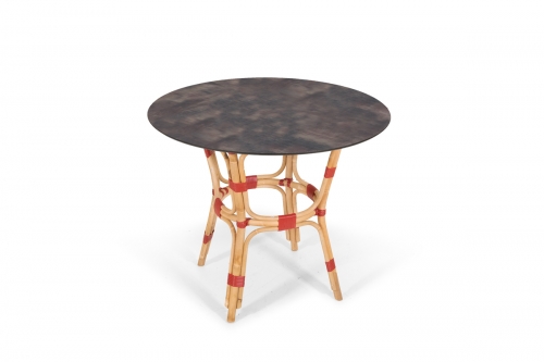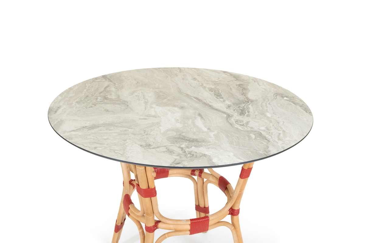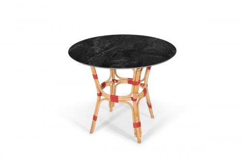 The structure is made of natural rattan, the bindings are in synthetic rattan, and the tabletop can be selected in glass or HPL.