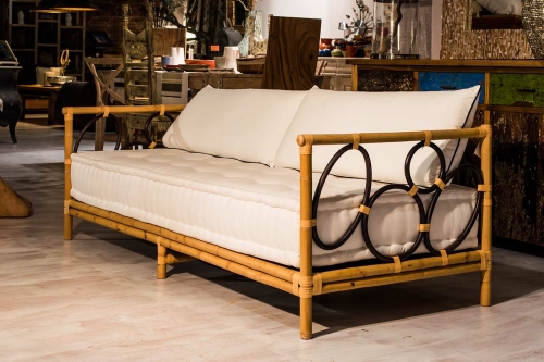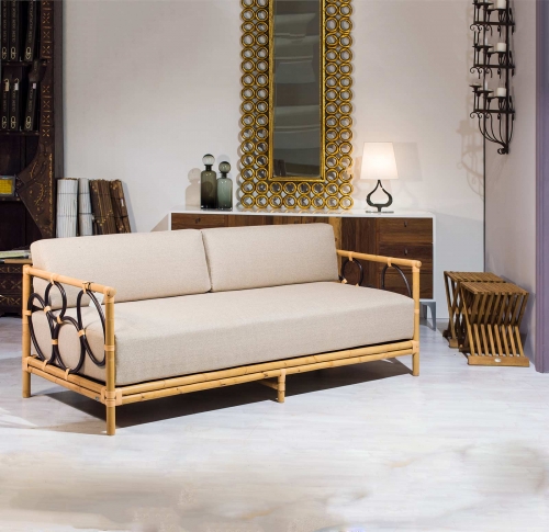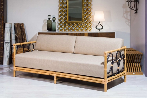 The circular motifs in colored manao give the sofa elegance and a certain "vintage" touch.