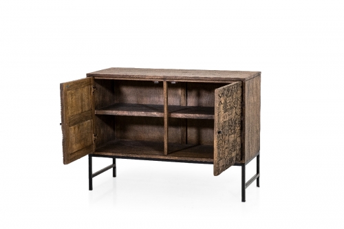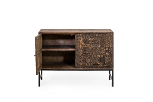 Shop 1046 - chest of drawers L01005 €1,296.00 Chest of drawers with 3 compartments, with hand engraved details dark brown stained mango wood, aluminum feet Add to cart