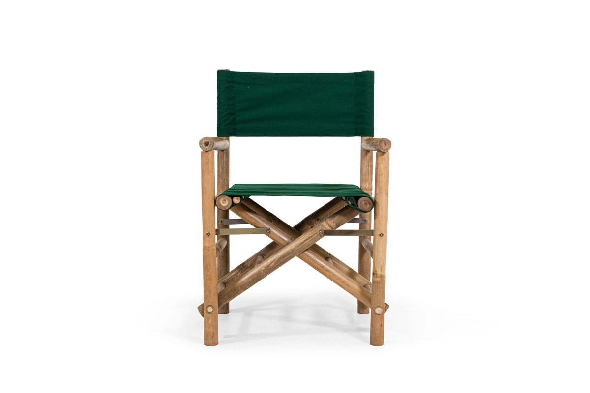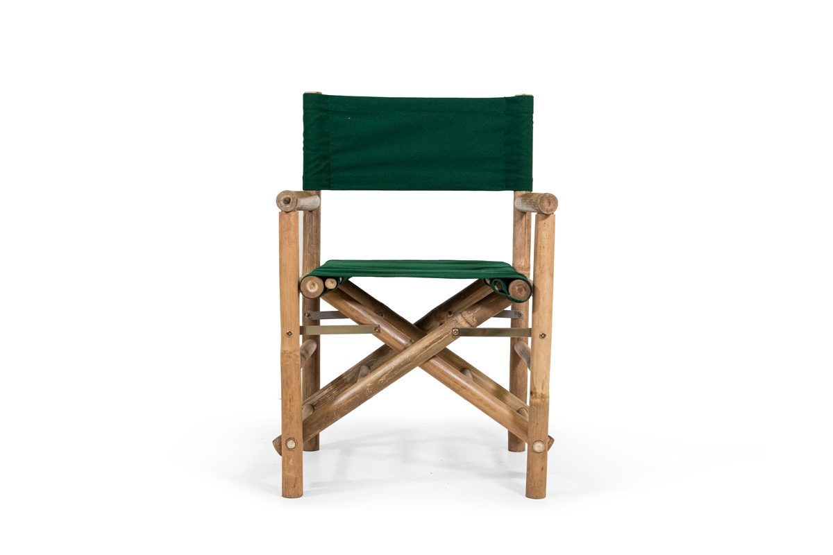 Director's chair made of natural manao wood. It features a solid structure with cross supports that ensure stability and long-lasting durability.