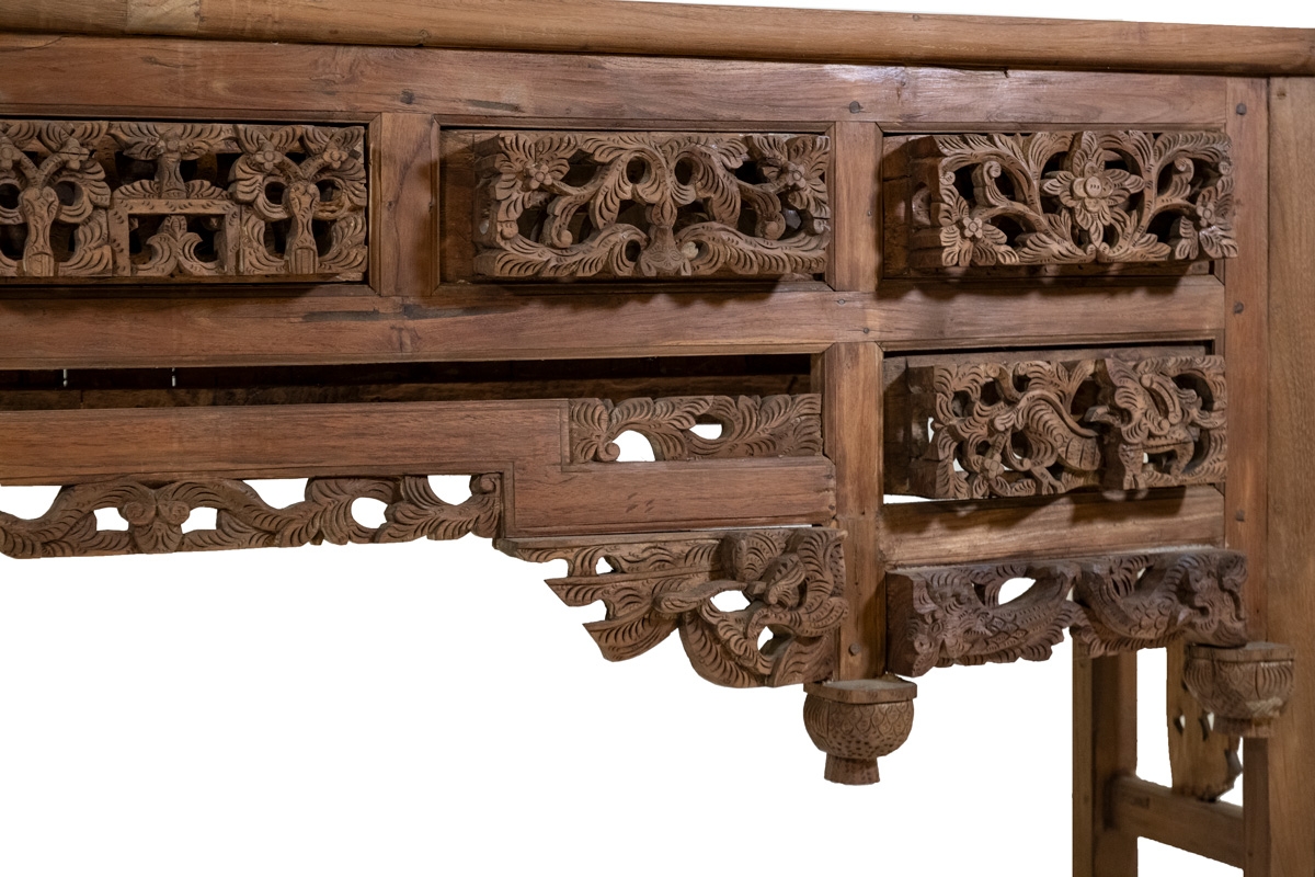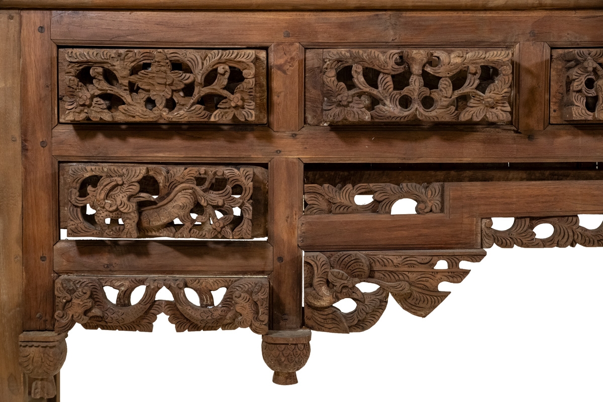 Furnishings SHOP 499 - console L0499 Solid teak wood Console, with an ethnic hand-carved line, can have multiple uses: it is suitable both as an entrance cabinet and as a pocket emptier. Color: pickled white Add to cart