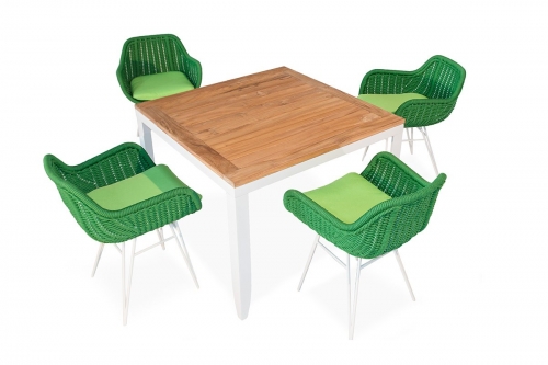 Còco Còco - dining armchair VCOCO.210 The colors of the sea, the sun and nature collected in a single collection.The CÒCO line has a powder-coated aluminum framing and a handmade polypropylene rope weave. Upholstery is in polyurethane foam. All our cushions come with water-repellent, removable and washable covers. View