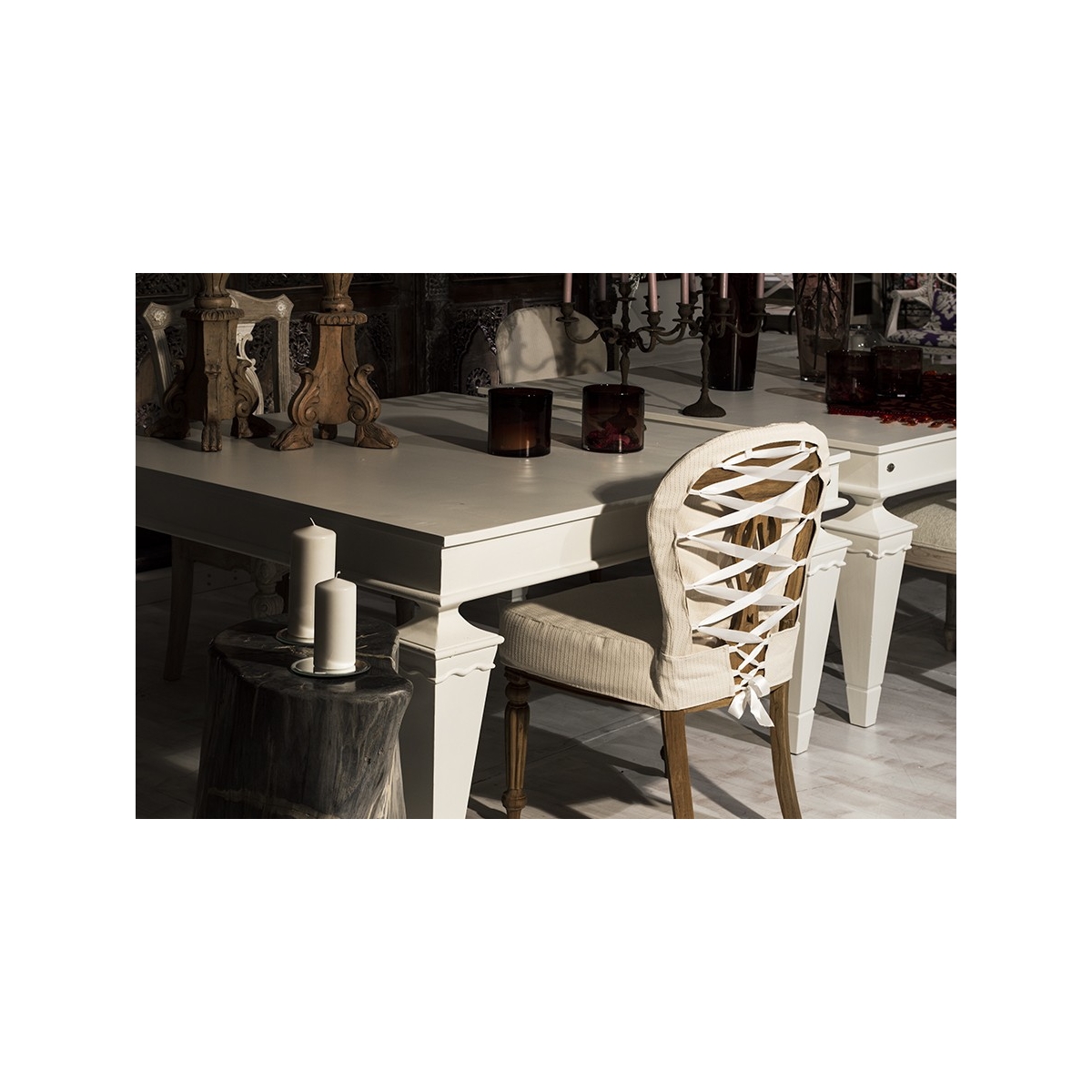 DINING TABLES SHOP 655 - dining table L0655 This table is entirely handcrafted using traditional techniques and tools. Small imperfections or cracks, that can naturally form in solid wood, highlight the uniqueness of this piece and the authenticity of the material. Color: white cream Add to cart