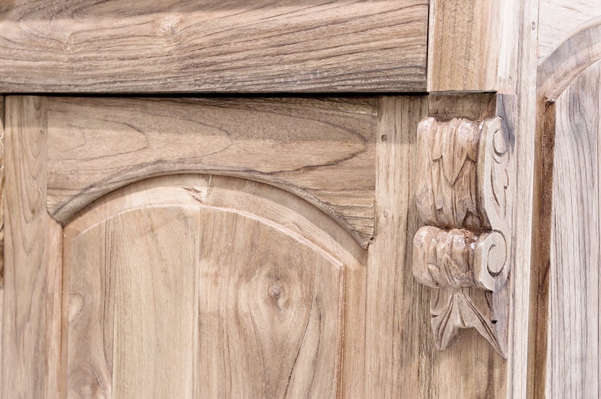 Furnishings SHOP 499 - console L0499 Solid teak wood Console, with an ethnic hand-carved line, can have multiple uses: it is suitable both as an entrance cabinet and as a pocket emptier. Color: pickled white Add to cart