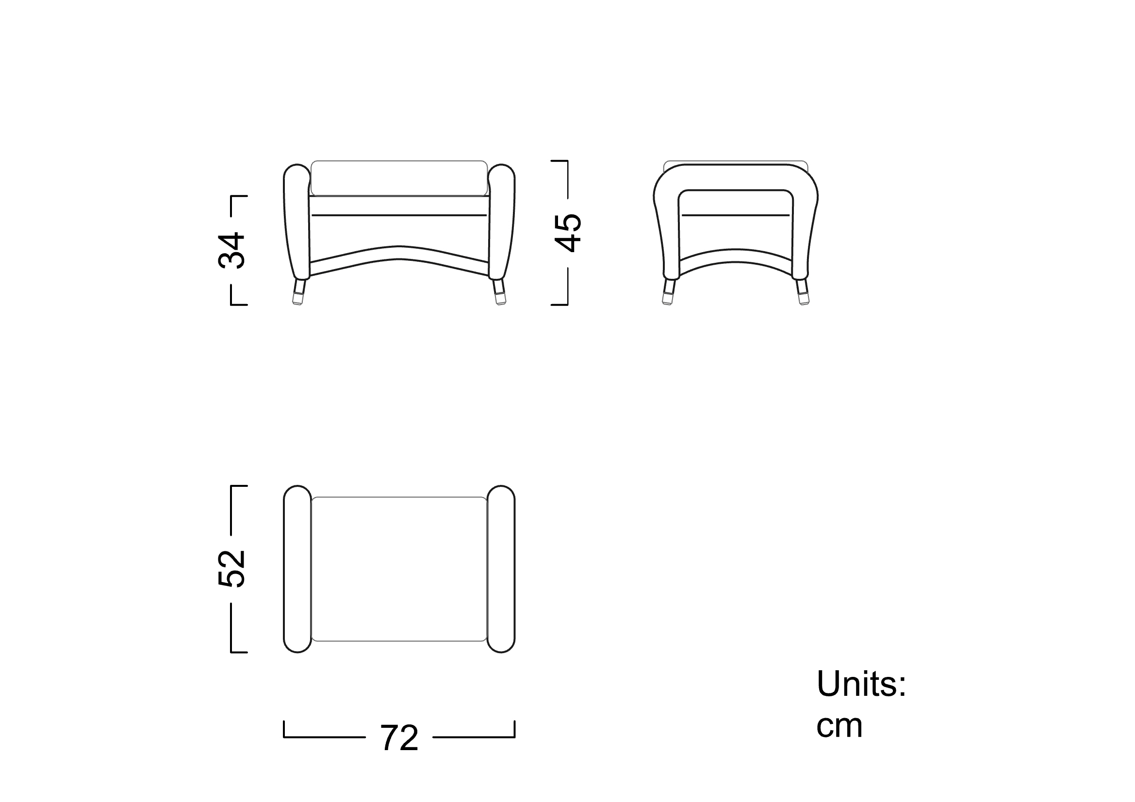 Width 72 - Depth 52 - Height 44