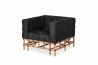 Quilted armchair in black suede, with natural Manao base.