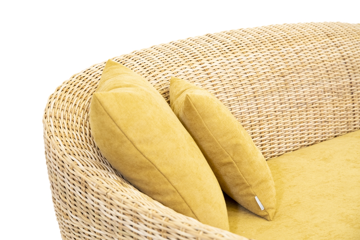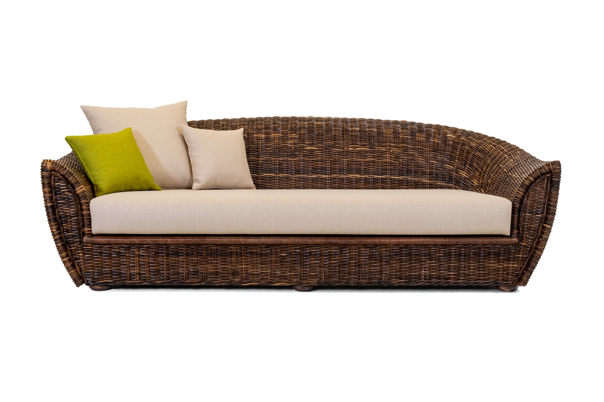 The pieces that make up the Retrò collection have a wooden frame covered in 6mm half moon natural rattan core entirely hand-woven by expert Master Craftsmen. Transparent matte finish.