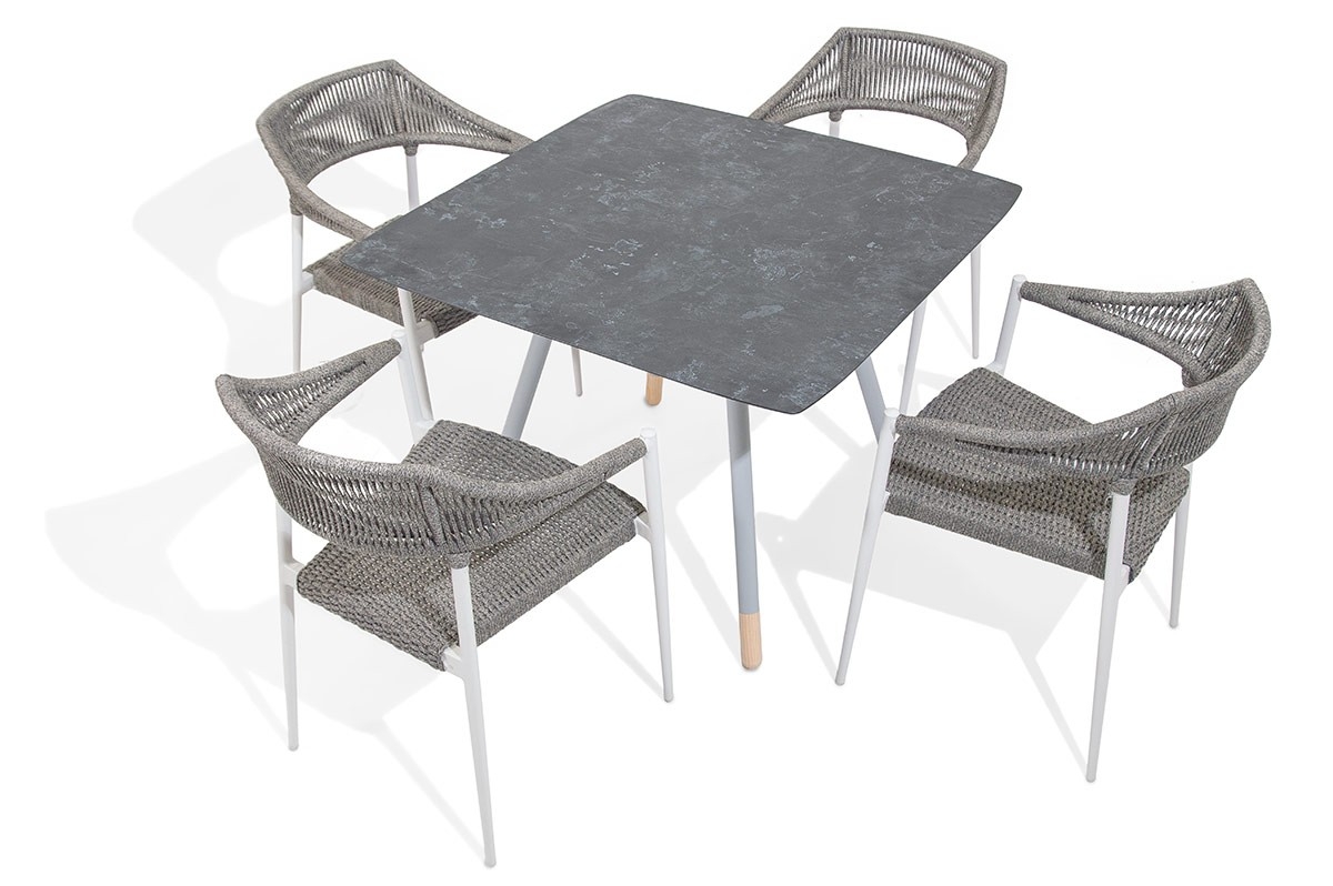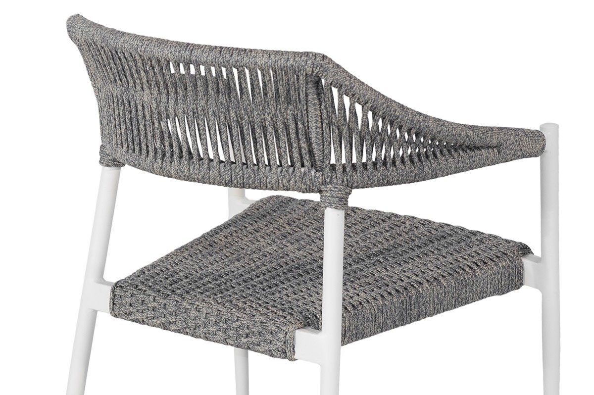 The LOONA chairs have a powder-coated aluminum framing and a handmade polypropylene rope.