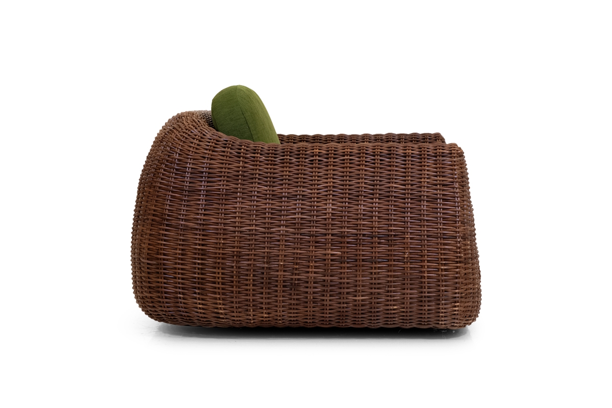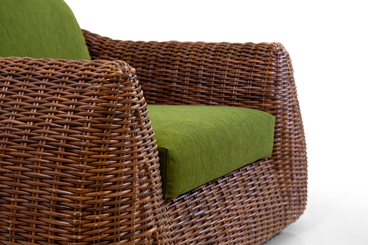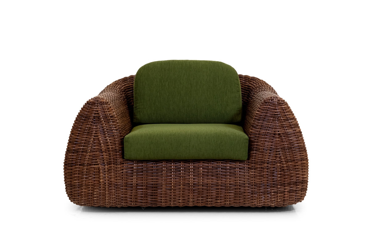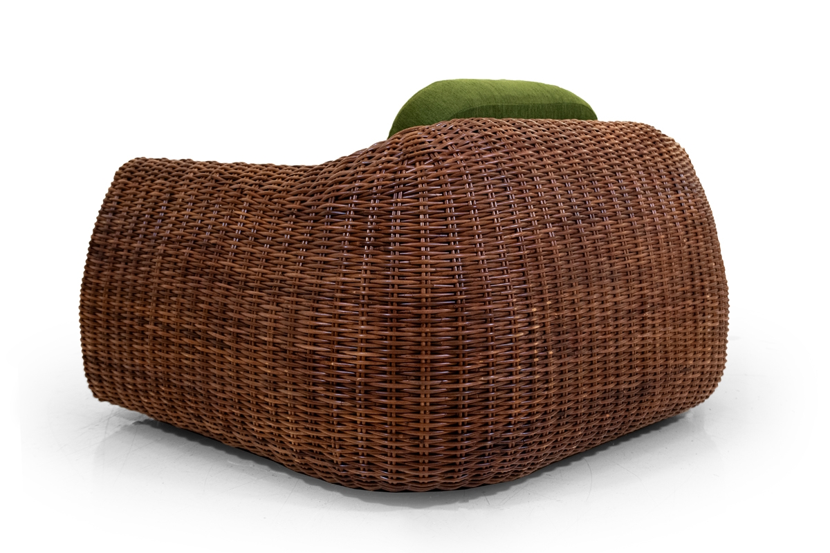 Mango Armchairs are the perfect synthesis of comfort and simplicity, thanks to their innovative design that combines arms and backrest into a single curved surface woven by hand without interruptions.