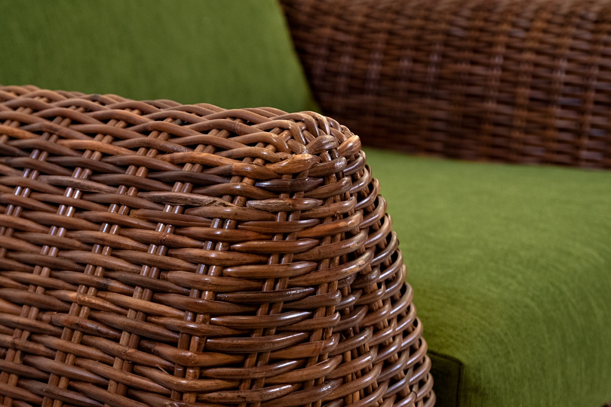 The pieces that make up the Mango collection have a wooden frame covered in 6mm half moon natural rattan core entirely hand-woven by expert Master Craftsmen. Transparent matte finish.