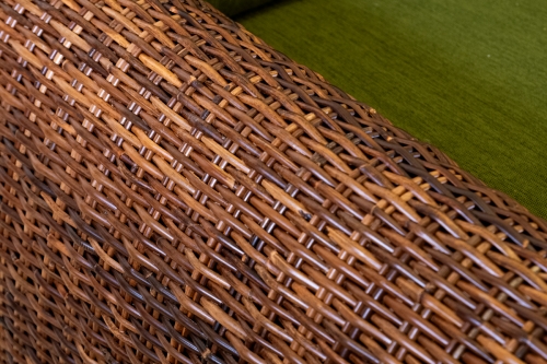 The pieces that make up the Mango collection have a wooden frame covered in 6mm half moon natural rattan core entirely hand-woven by expert Master Craftsmen. Transparent matte finish.