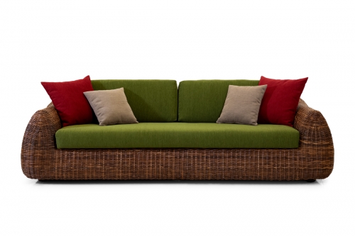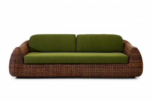 Mango sofas are the perfect synthesis of comfort and simplicity, thanks to their innovative design that combines arms and backrest into a single curved surface woven by hand without interruptions.