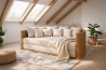The frame consists of a wooden structure that supports two large woven surfaces, in & outsied, which develop without interruption in the rattan weave. It can be dyed and customized with various types of colouring. The continuous weaving, without interruptions and applied on such an extensive and clean surface, enhances the very essence of the workmanship which is shown in its most essential and pure form.