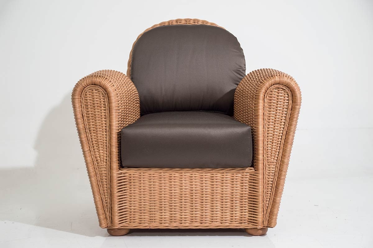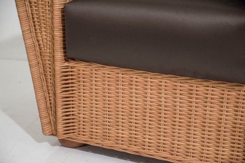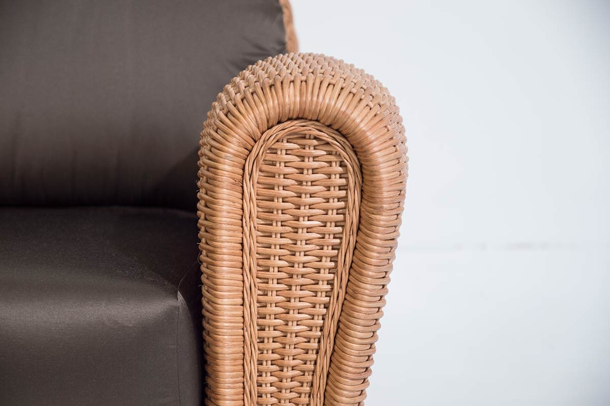 The Mirò rattan armchair and sofa have a wooden frame, woven with 6 mm natural halfmoon core. Transparent finish.
