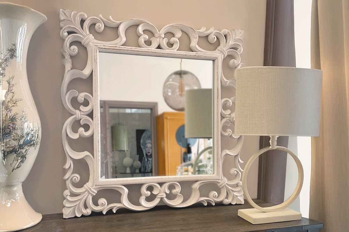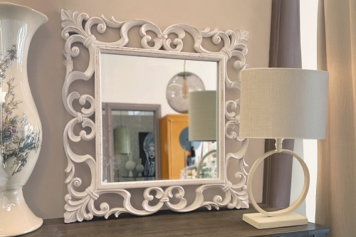 MIRRORS SHOP 2046 - mirror AS2036 Mirror with hand carved Teak frame. Finish: white lacquered Add to cart