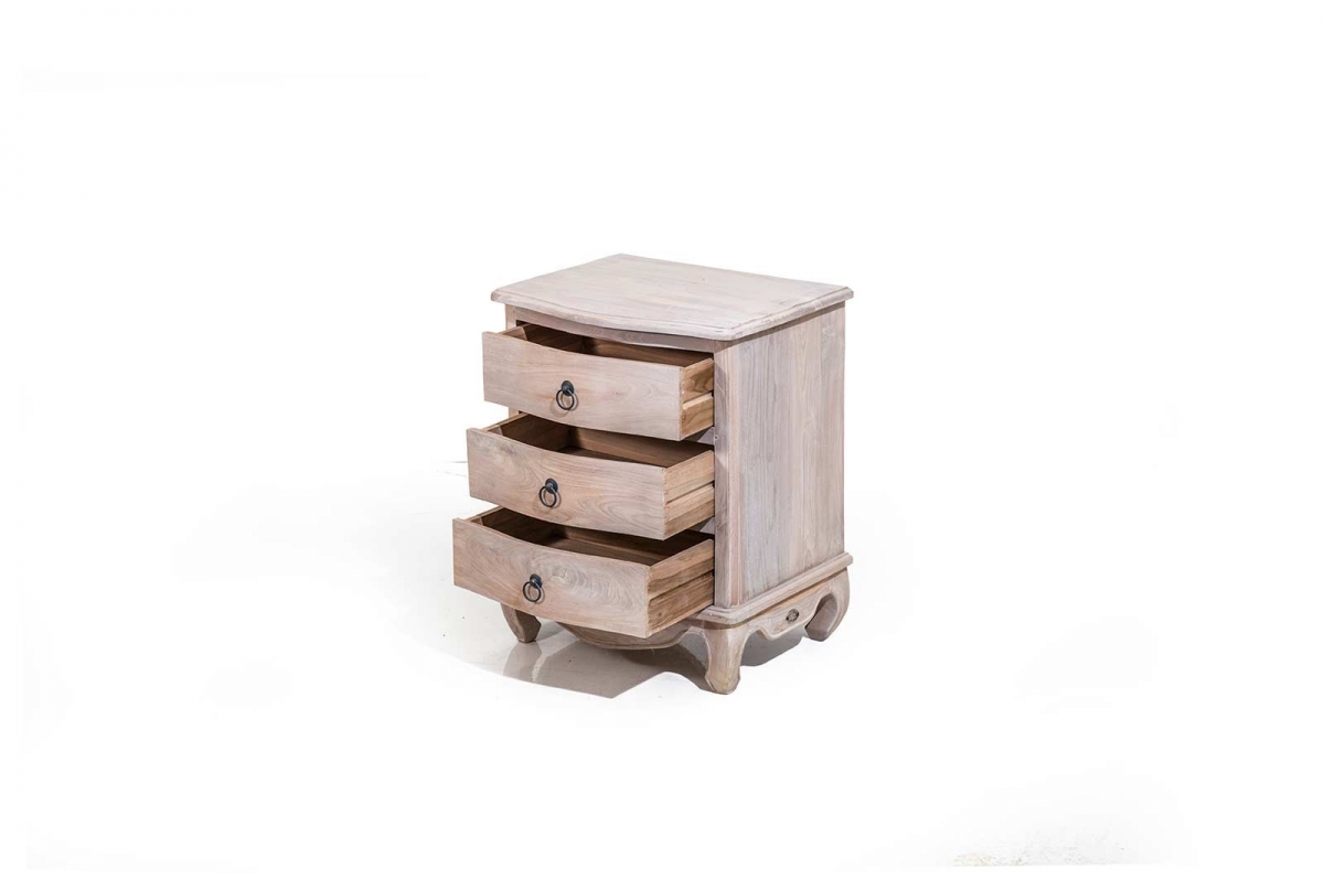 NIGHTSTANDS SHOP 809 - bedside L0809 Hand-carved teakwood bedside table with three drawers.Finitura: white wash Add to cart