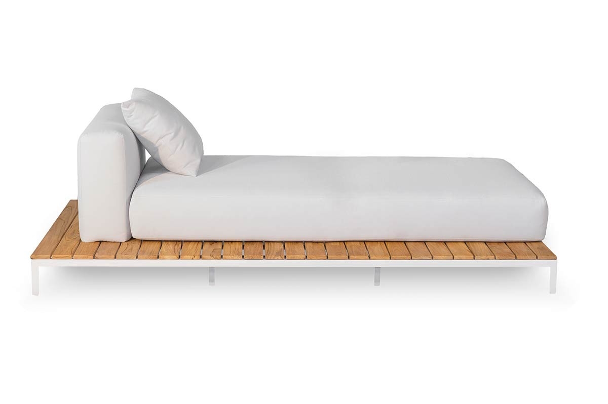 - The corner sofa MOD01 features a base made of natural Teak wood, in a "rustic" style with an aluminum frame.