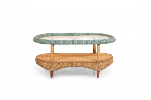 Pouf and Tables SHOP SYLVIA - Table - red & green wash - Rattan RSYLV.160.070.3 The Sylvia coffee table has a rattan frame and is hand-woven in wicker. Antique pink finish. Add to cart