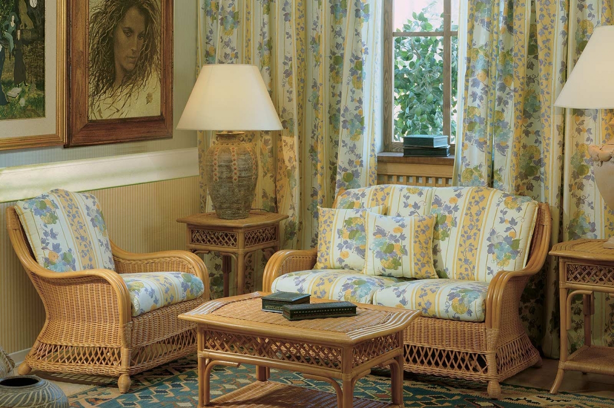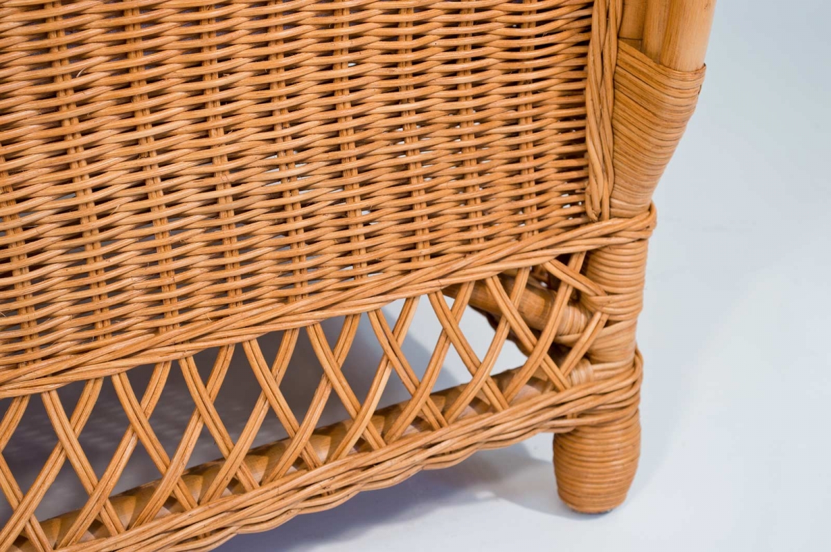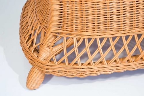 The Present rattan armchair, pouf and sofa have a wood frame, woven with natural wicker by 3mm. Transparent finish.