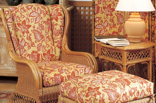 Present Present - Bergere - rattan RPRES.012.040 The Present rattan armchair, pouf and sofa have a wood frame, woven with natural wicker by 3mm. Transparent finish.Cushions in polyurethane foam, removable and covered with an ecru base-category fabric or with a higher category whose colors and patterns are selectable under "fabrics".We can make this item to measure and with different kinds of material too. View