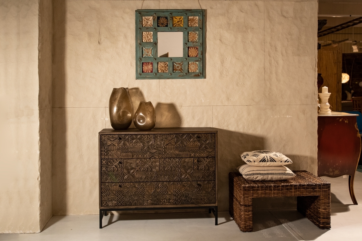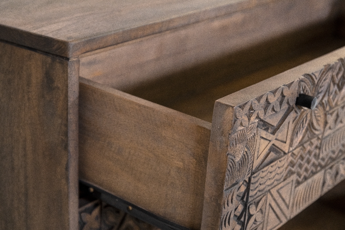BUFFET SHOP 1045 - 2-door cabinet L01005 €1,521.00 2-door cabinet, with hand engraved details dark brown stained mango wood, aluminum feet Add to cart