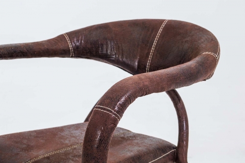 Theo armchair upholstered with aluminum frame, and covered in suede.