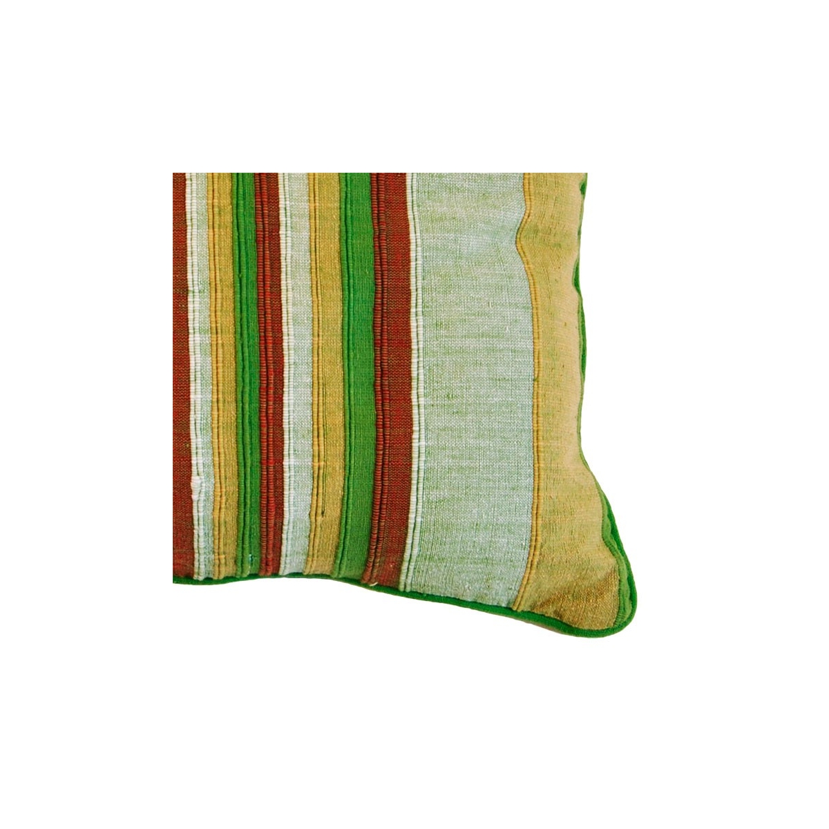 Cushion cover in soft cotton, green stripe pattern, contrasting colors.