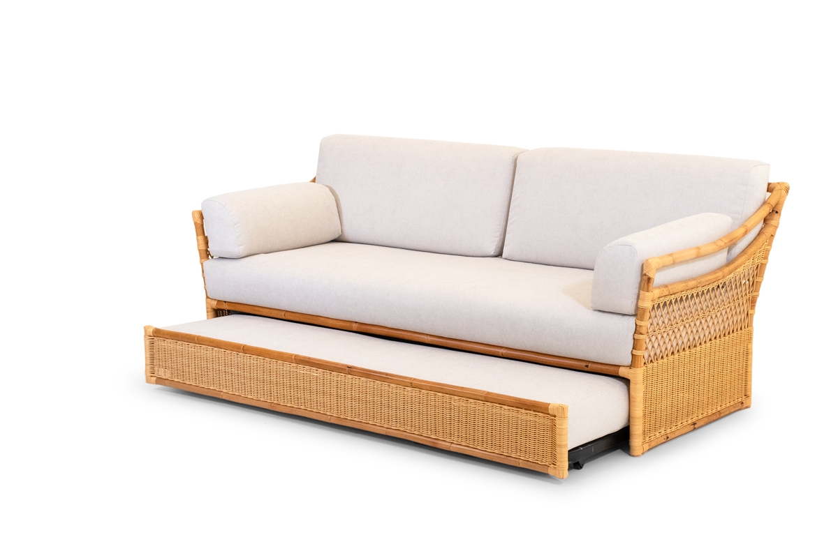 The pull-out base lifts up to the same height as the upper base, forming a double bed.