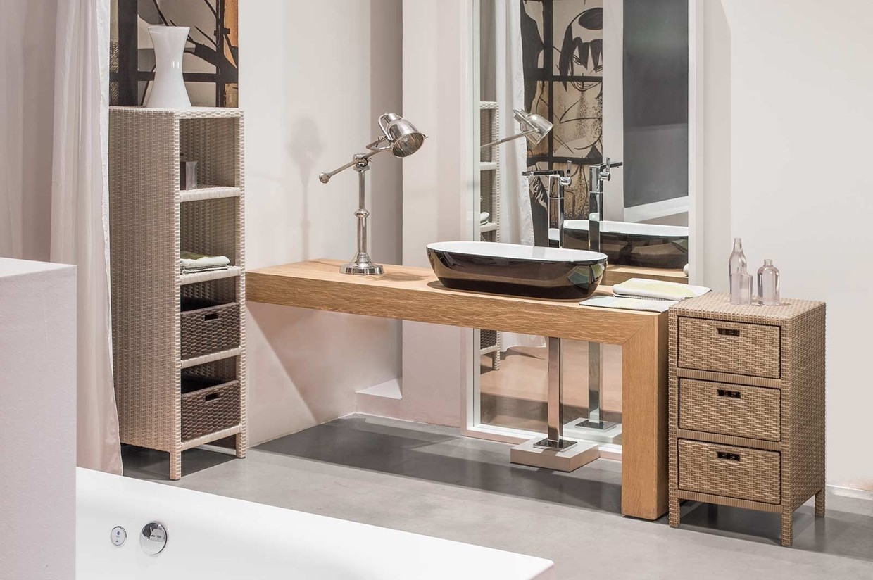 Contenitori multiuso dalla linea pulita ed essenziale. L'intreccio di corteccia di rattan naturale renderà il vostro ambiente caldo ed accogliente.