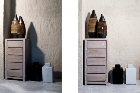 CASSETTIERE SHOP 944 - cassettiera L0944 610,00 € Cassettiera minimal in teak con 5 cassetti.Colore: naturale o bianco decapato Aggiungi al carrello