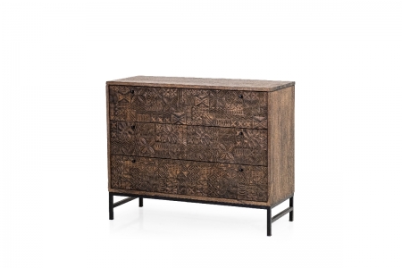 Shop 1046 - cassettiera L01005 1.296,00 € Cassettiera a 3 scomparti, con dettagli incisi a mano legno di mango, tinto color marrone scuro, piedi in alluminio Aggiungi al carrello