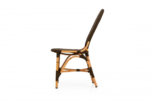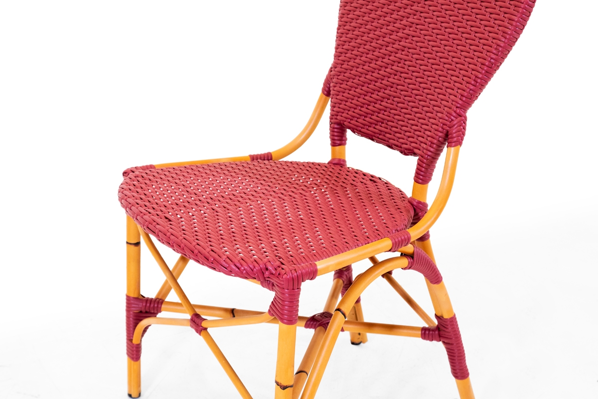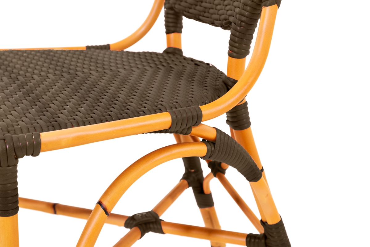 Con quel suo design ispirato ai classici caffè parigini, la sedie Bistrot mette d’accordo lo stile e la praticità. Questa sedia parla di raffinatezza e robustezza grazie al telaio in alluminio resistente, l’intreccio in rattan sintetico e la finitura effetto natural cane, con quella tipica corteccia ed i caratteristici nodi. Grazie al comfort eccezionale e alla lunga durata nel tempo, è la sedia ideale per l’arredo delle strutture ricettive.