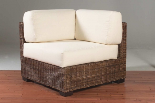 Modulo ad angolo in Rattan con telaio in legno, intrecciato in croco o giunco naturale da 6mm. Finitura trasparente opaca.