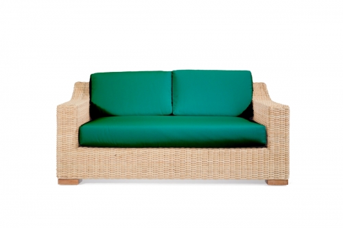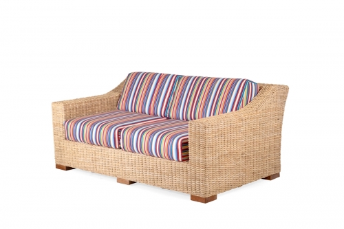 Divano 2 posti con telaio in legno, intrecciato in croco o giunco naturale da 6mm. Finitura trasparente opaca