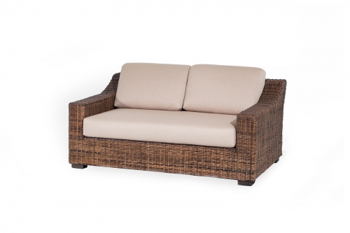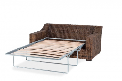 Divano letto con telaio in legno ed intreccio in rattan naturale. Finitura trasparente opaca