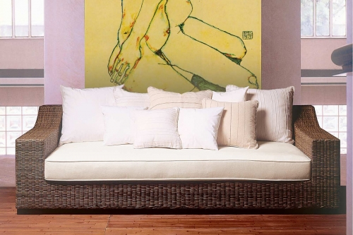 Divanone con telaio in legno, intrecciato in croco o giunco naturale da 6mm. Finitura trasparente opaca.
