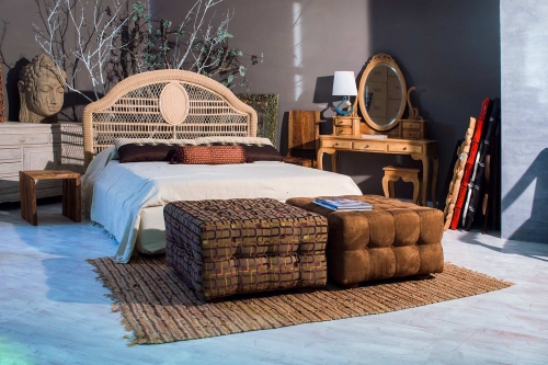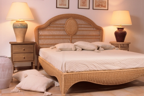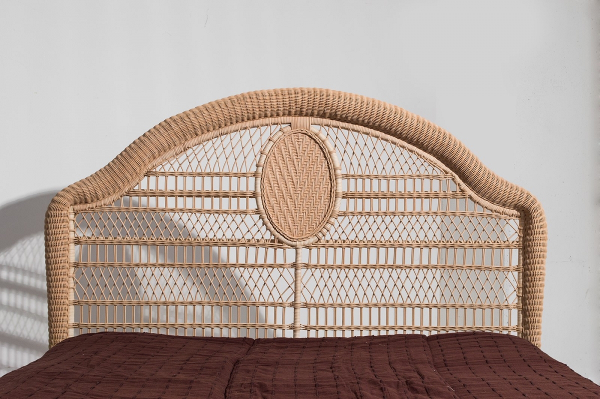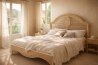 Letto matrimoniale con telaio in rattan, intrecciato in midollino da 3mm. Finitura trasparente.