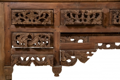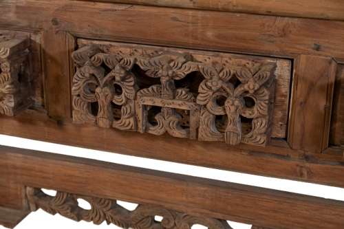 Mobili SHOP 499 - consolle L0499 Consolle in teak massello, dalla linea etnica intagliata a mano, può avere molteplici usi: è adatto sia come mobiletto di entrata sia come svuota tasche. Colore: bianco decapato Aggiungi al carrello