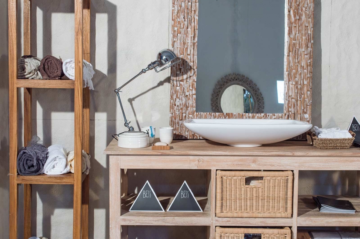 Prodotti 581 - mobile a colonna Mobile a colonna con due mensole e tre cassetti in legno di teak,Realizzato interamente a mano. Finitura: naturale Aggiungi al carrello