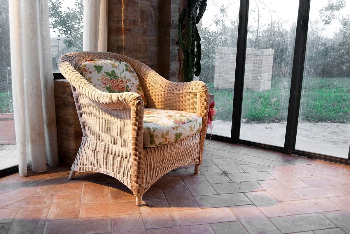 I pezzi che compongono la collezione Consueto hanno un telaio in legno rivestito in rattan naturale interamente intrecciato a mano da esperti Maestri Artigiani.