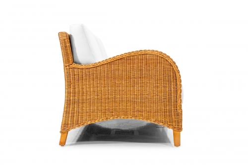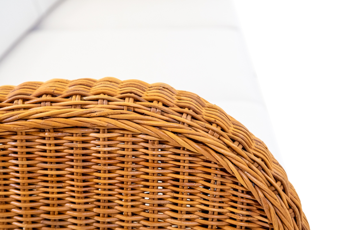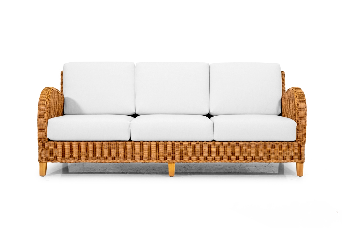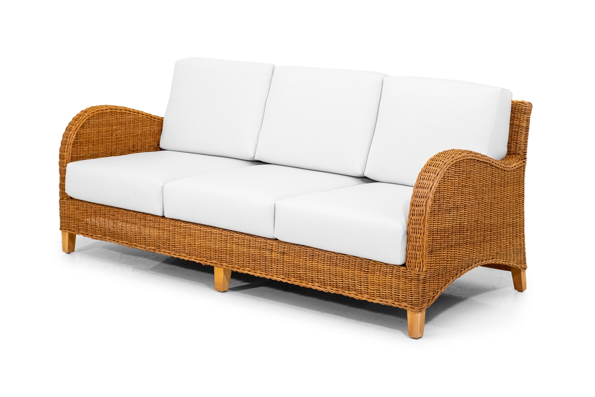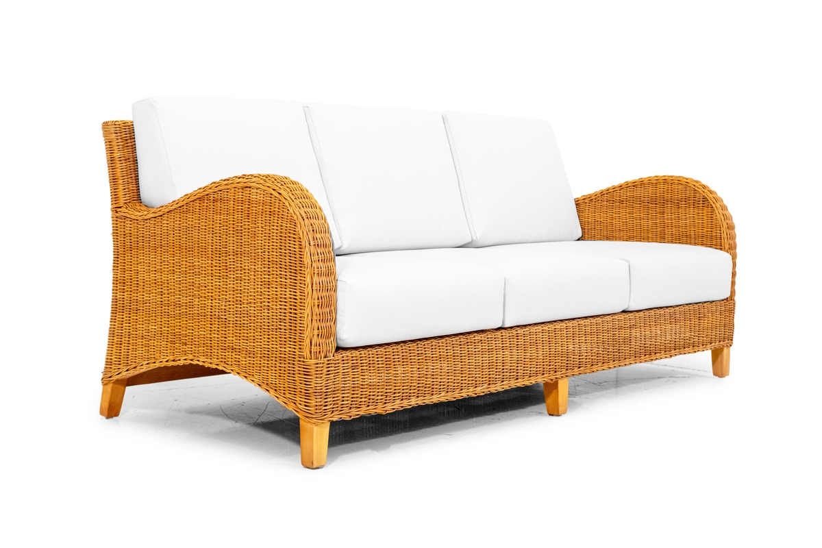 Divano in Rattan con telaio in legno, intrecciato in giunchino da 3 mm. Finitura trasparente opaca