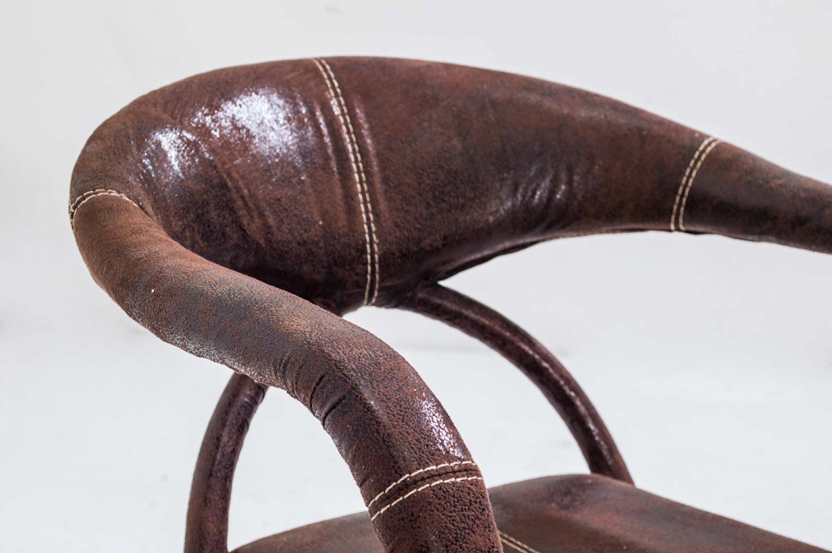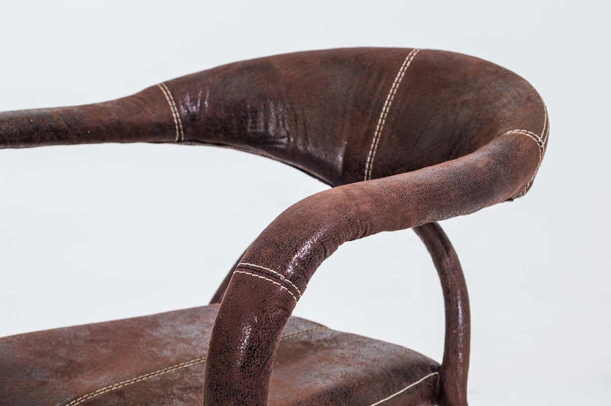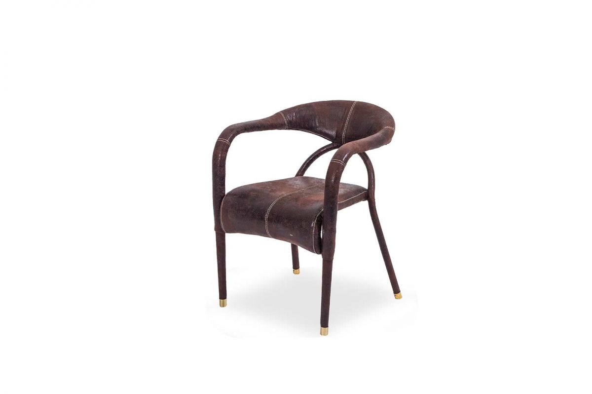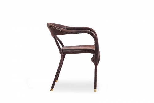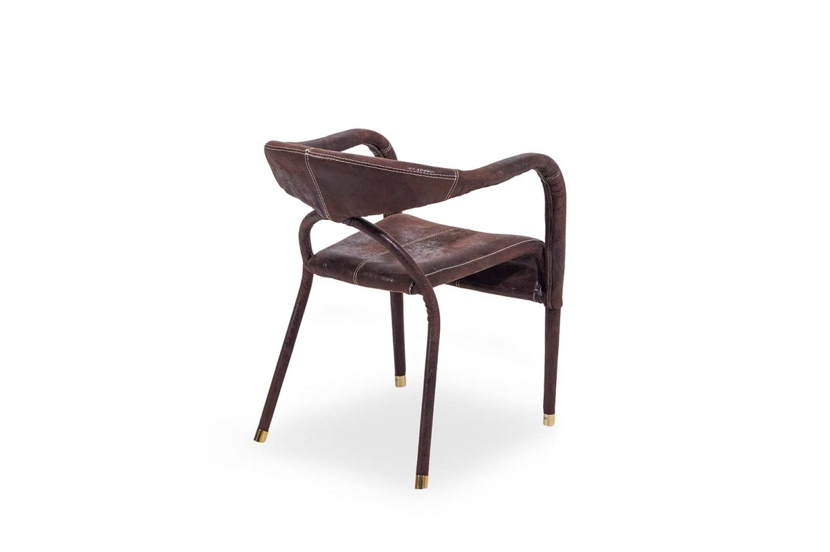 Poltroncina Theo imbottita con telaio in alluminio, e rivestita in suede.