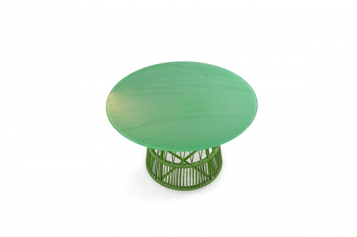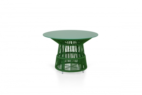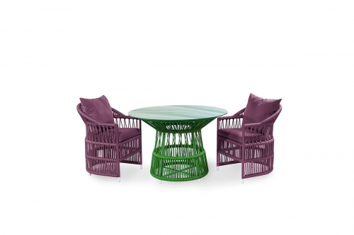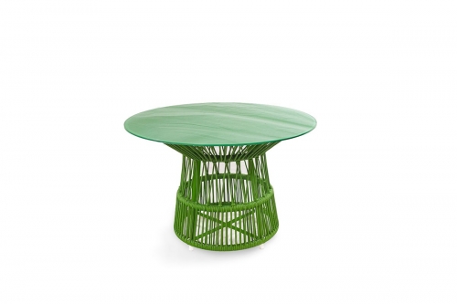 La linea DRILL ha un telaio in alluminio ricoperto da un intreccio in corda di polipropilene interamente fatto a mano.