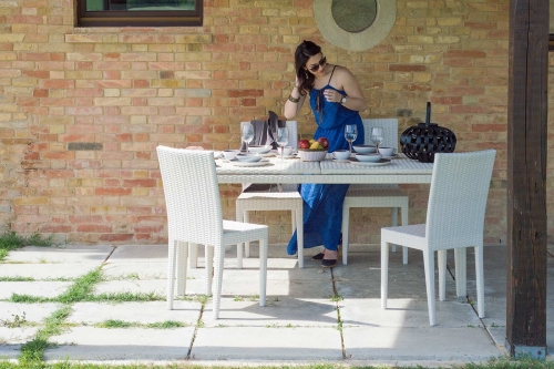Semplice e familiare. Una collezione che invita a godersi tempo libero all’aperto, sedersi intorno a un tavolo che sa fare spazio… perché più siamo meglio stiamo!