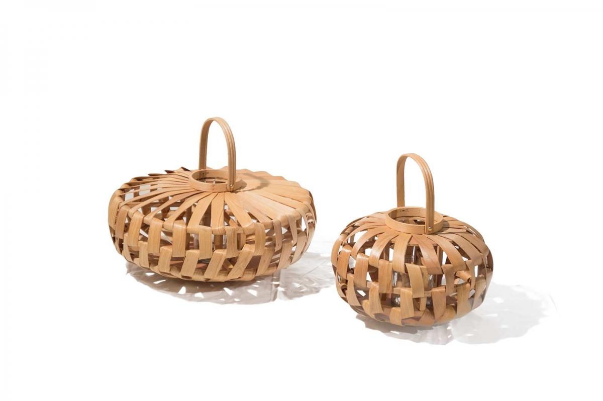 Lanterna costituita da sottili fogli di legno di conifera naturale; completa di contenitore portacandela in vetro. Candela esclusa.