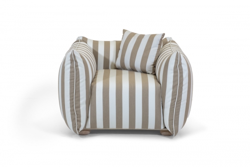 Poltrona imbottito interamente realizzato a mano. Le sue linee pulite conferiscono all'ambiente una nota elegante e raffinata.