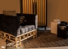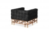Poltrona Capitonnè in suede nero, con basamento in Manao naturale.