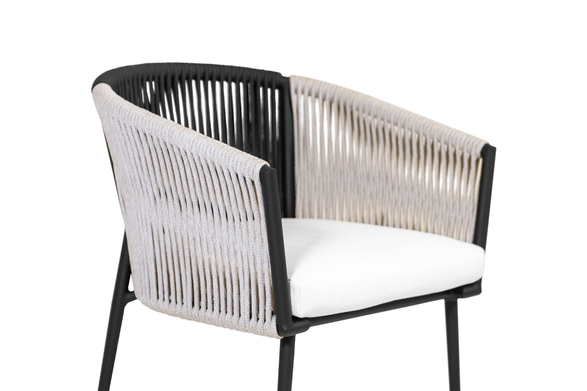 Progettata per resistere agli agenti atmosferici, la corda in polipropilene garantisce durabilità e bellezza anche in ambienti esterni. La struttura in alluminio rende ogni elemento solido ma leggero, evitando il rischio di corrosione.