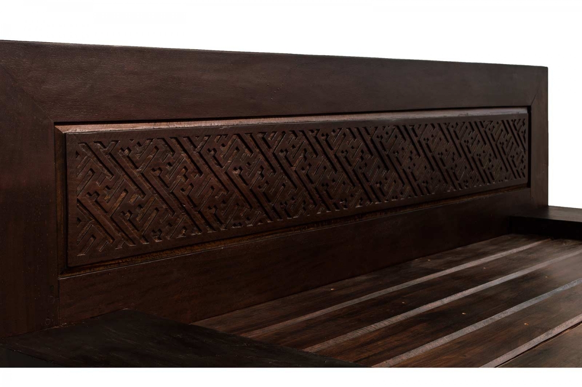Letti SHOP 518 - letto L0518 Letto in legno di teak massello con incisioni sulla testata realizzate artigianalmente.Colore: bianco decapato View
