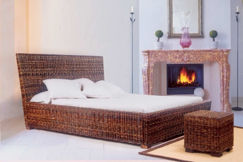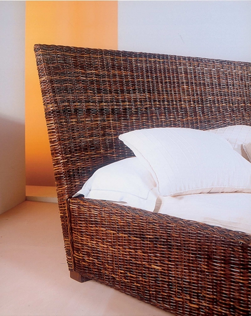 Letto con telaio in rattan, intrecciato in croco.